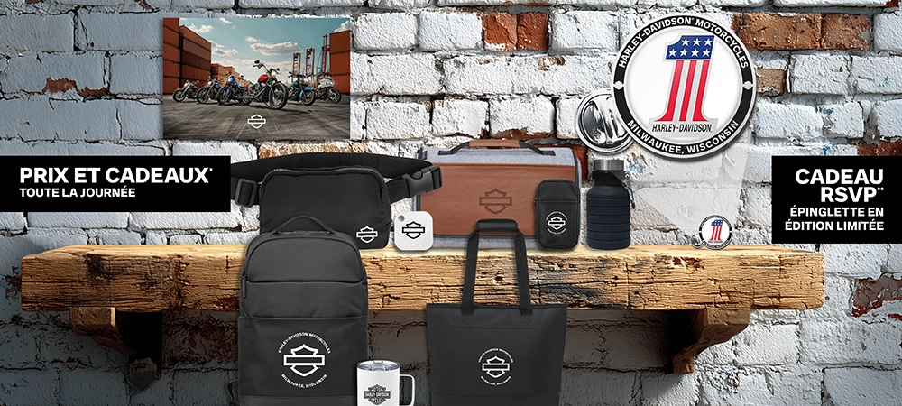 *AUCUN ACHAT/PAIEMENT REQUIS. S’inscrire le 21 février 2026 de 9 h HNE à 23 h 59 HNE chez un concessionnaire participant local. Vous devez être résidents légaux des É.-U. (sauf Hawaï) ou du Canada, âgés de 21 ans et plus. D’autres restrictions d’admissibilité s’appliquent. Pour s’inscrire, rendez-vous chez un concessionnaire Harley-Davidson® participant, balayer le code QR et suivre les instructions le 21 février 2026 avant 23 h 59 HNE. Les gagnants du concours « Démarrez la saison » seront déterminés vers le 23 février 2026. Votre présence n’est pas requise pour gagner. Tous les gagnants de prix de motos doivent payer les frais de plaque, d’immatriculation, les frais du concessionnaire et tous autres frais avant de recevoir le prix. Le tirage des gagnants des prix de séances de magasinage sera effectué par marché : (2) au Canada, (4) par marché aux É-U. Les gagnants potentiels de tous les prix doivent répondre dans les 48 heures suivant la réception du courriel de Mighty Loud pour gagner. Valeur approximative de l’ensemble des prix : 79 848 $ US/CA. D’autres restrictions et conditions d’admissibilité s’appliquent. Voir le règlement complet (chez les concessionnaires H-D® participants ou en ligne sur h-dpromo.com/kickstart) pour la description des prix, l’information sur les différentes méthodes d’inscription, sur les chances de gagner, et bien plus encore. Commanditaire ou gestionnaire : Mighty Loud, Inc. Offre non valide lorsqu’interdite par la loi.